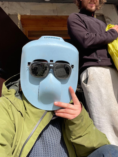 We went to go pick up a handheld welding machine from a friend, who looked like a mad mechanic from a steam punk movie. He pulled it out of the car and the exposed wires ripped off, so he ran off to get a set of pliers and some tape and taped it back together, unconvincingly I might add… The welding machine itself looked ancient and terrifying compared to what I learned on in school, but he showed us and it did work just fine(ish). Also their welding masks are terrifying looking.